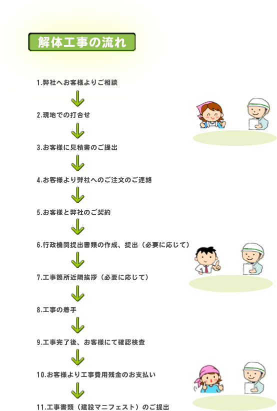 弊社へお客様がお申し込みをされてから工事が完了するまでの、流れをご覧下さい。
