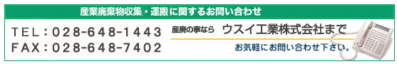 土木・舗装・建物解体、収集運搬業:ウスイ工業株式会社 〒320-0856 栃木県宇都宮市砥上町417番地 TEL028-648-1443