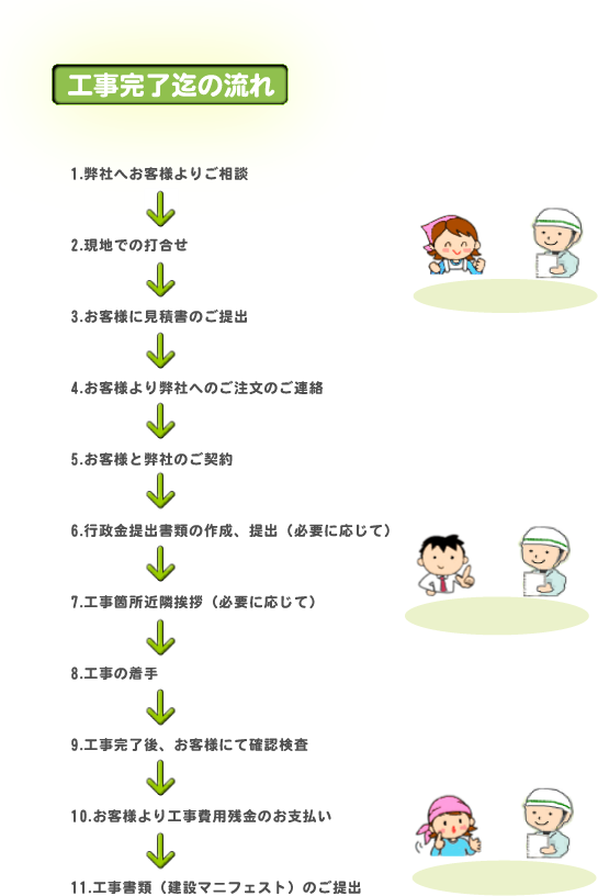 弊社へお客様がお申し込みをされてから工事が完了するまでの、流れをご覧下さい。